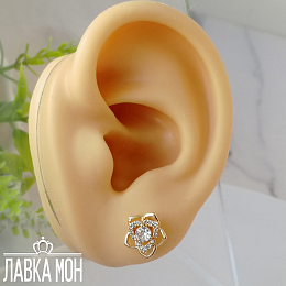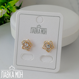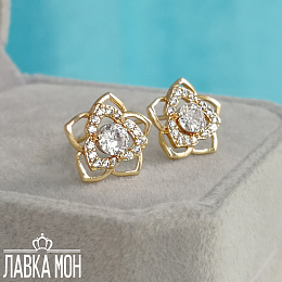 Легкие пусеты "Цветы в стиле Шанель", тонкая ювелирная работа с вставками под бриллианты. Размер декоративной части около 1см. Фабрика XP.