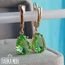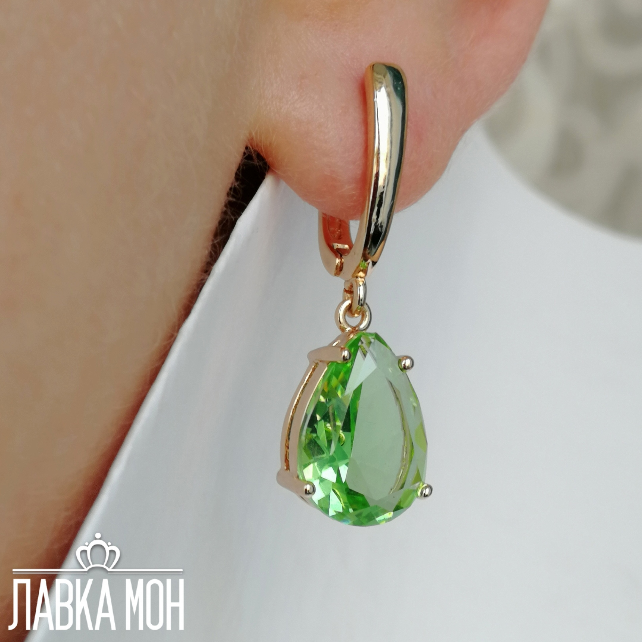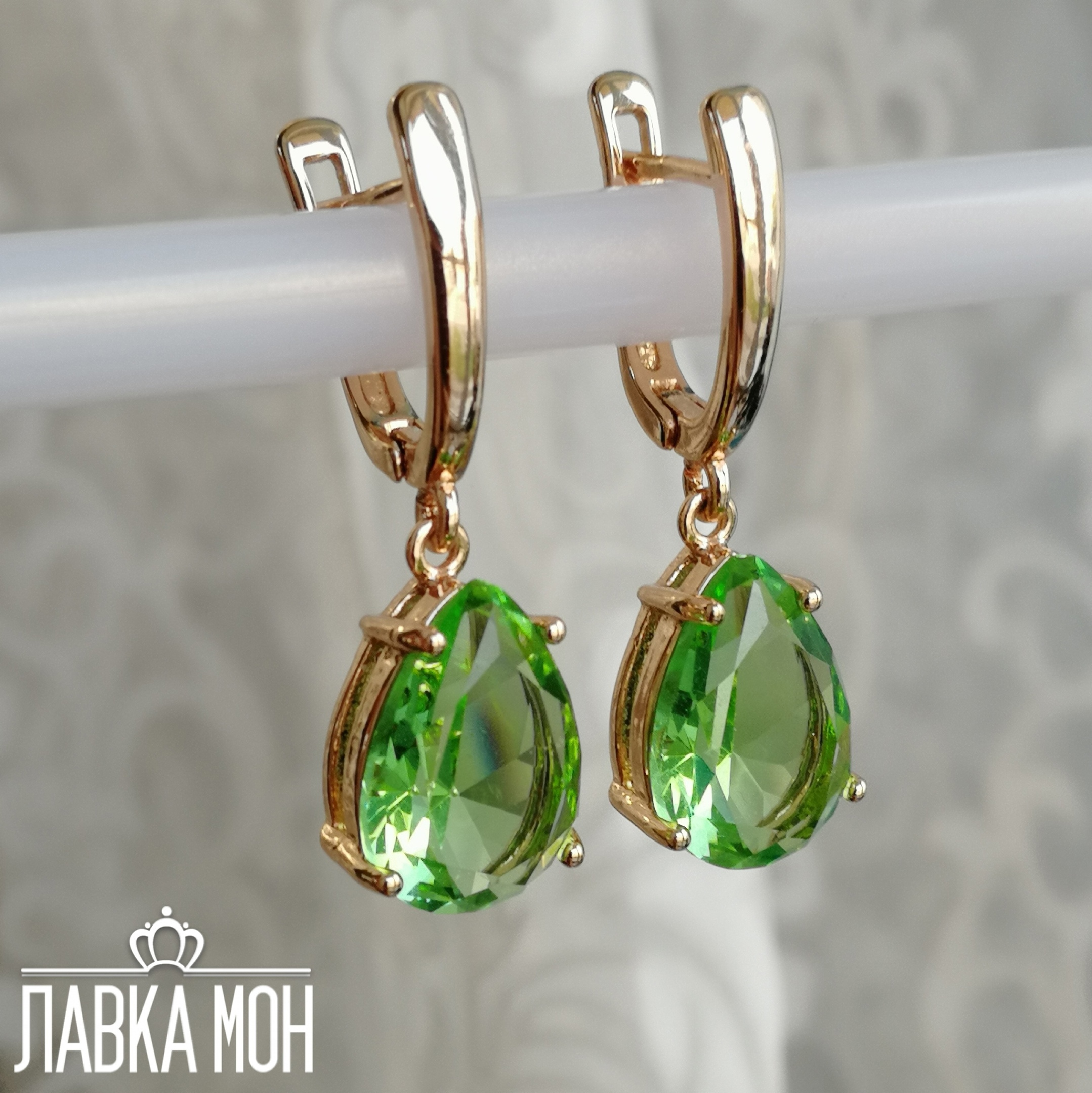 Нарядные, яркие серьги-капли из мед.сплава от фабрики Fj. Общая длина изделия 3см.