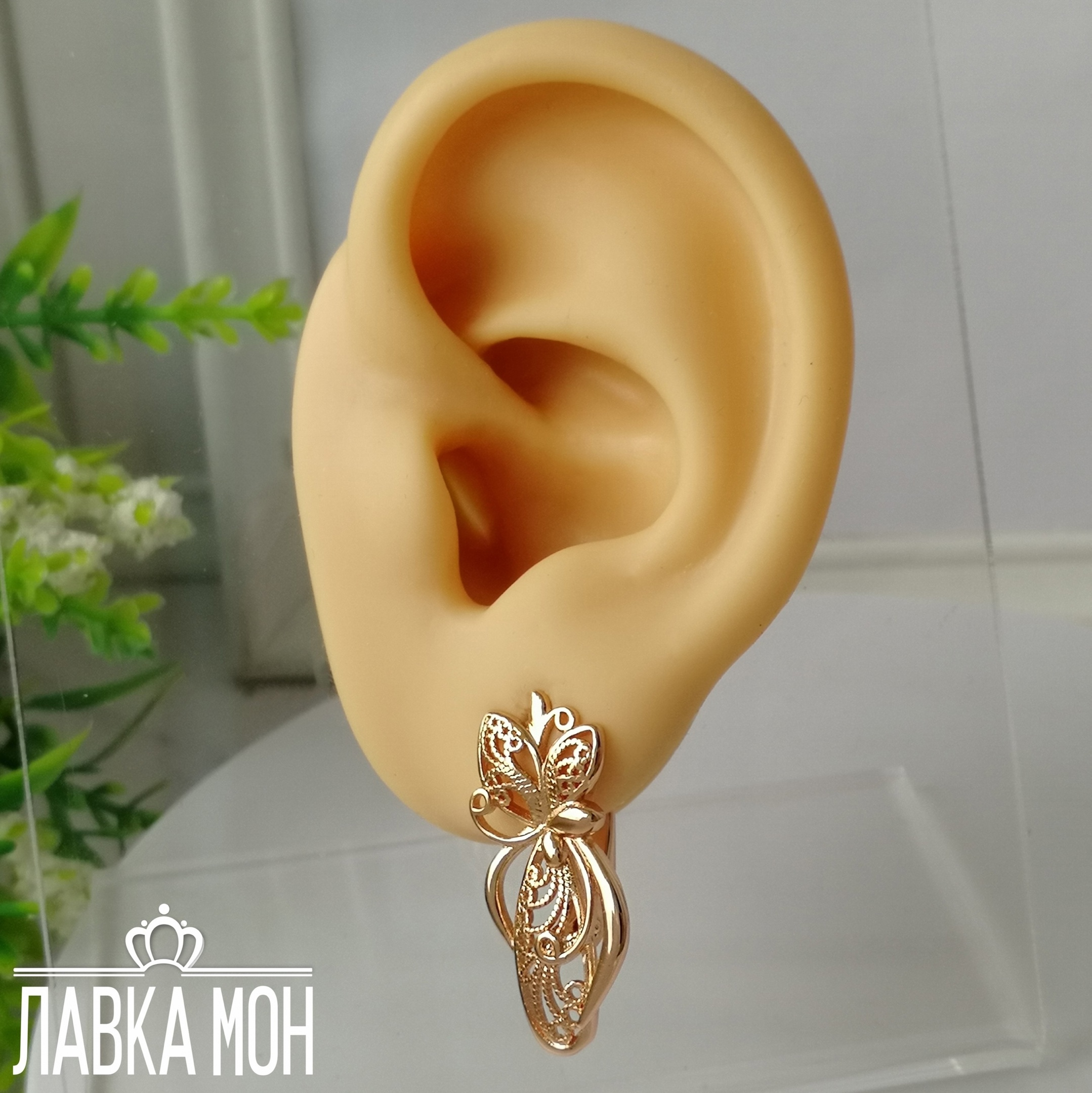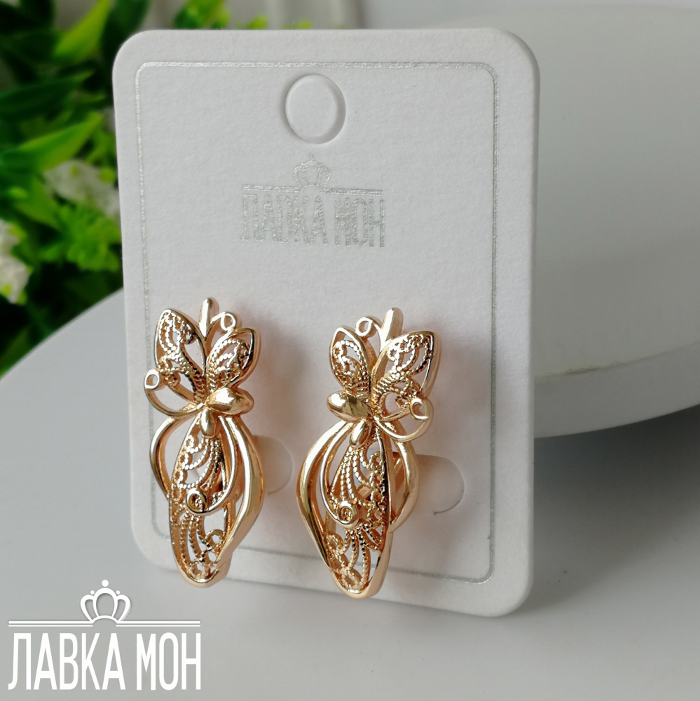 Серьги от Fj в технике скань, выполнены в оттенке розового золота. Английский замок, высота около 2,6см.