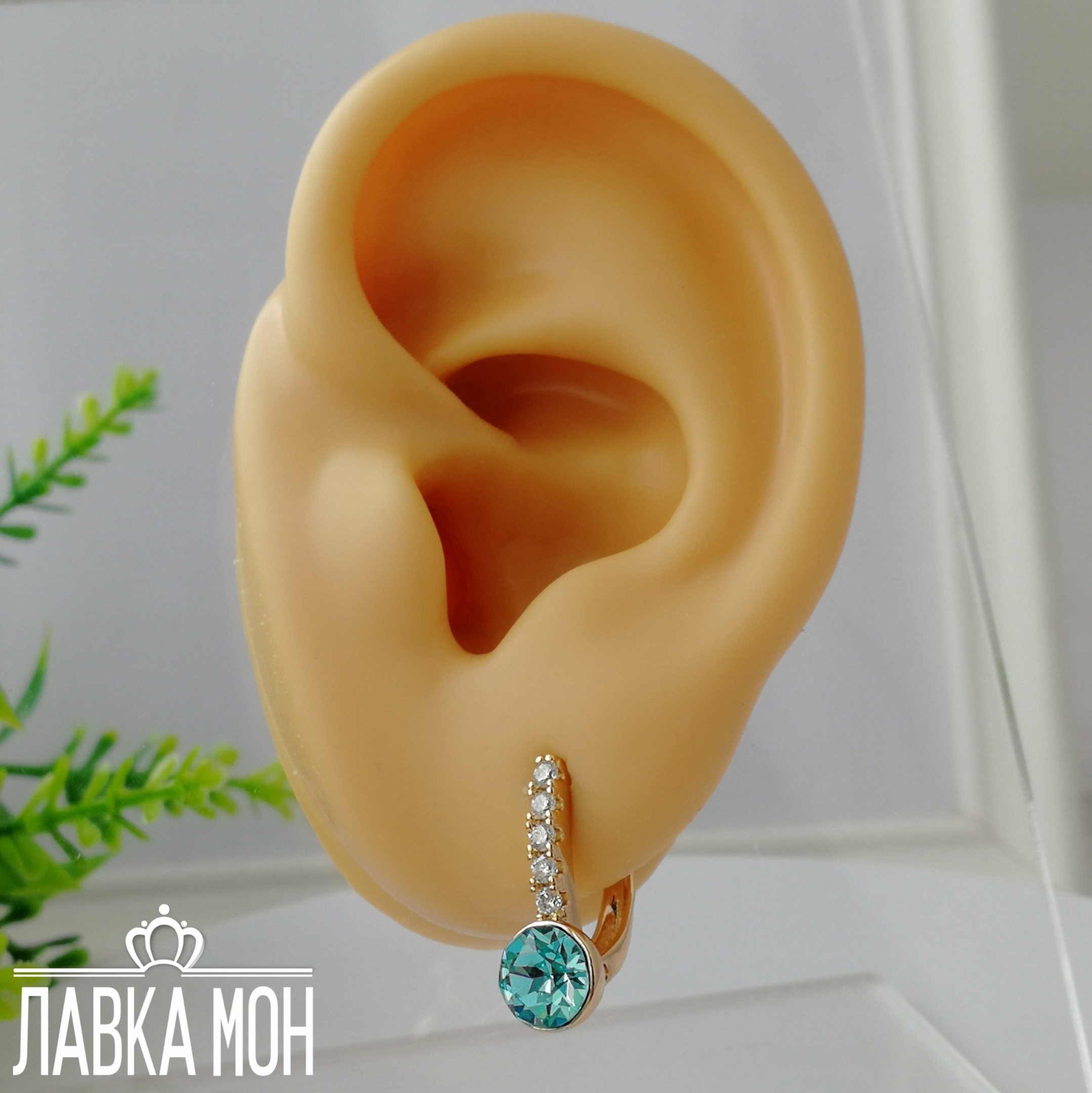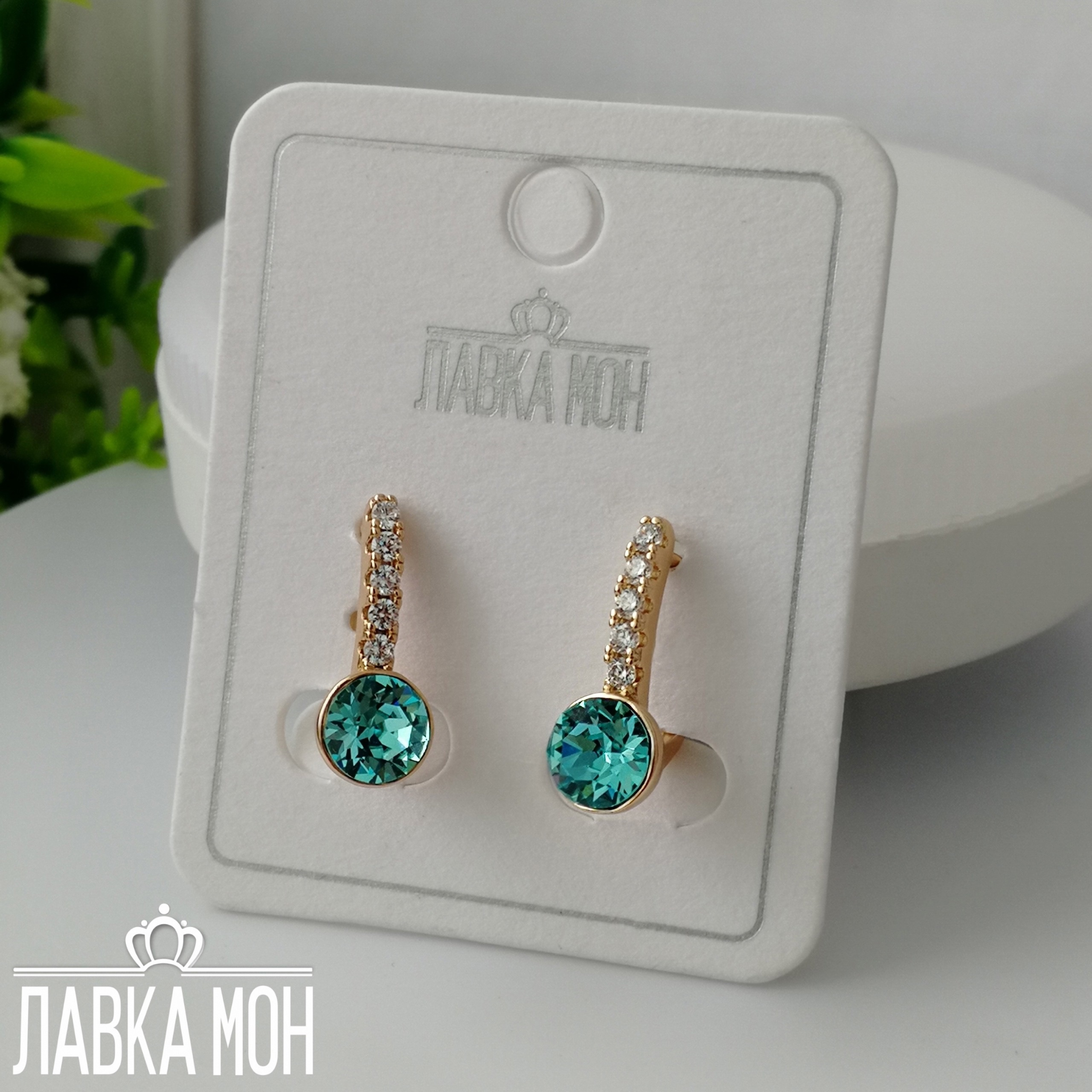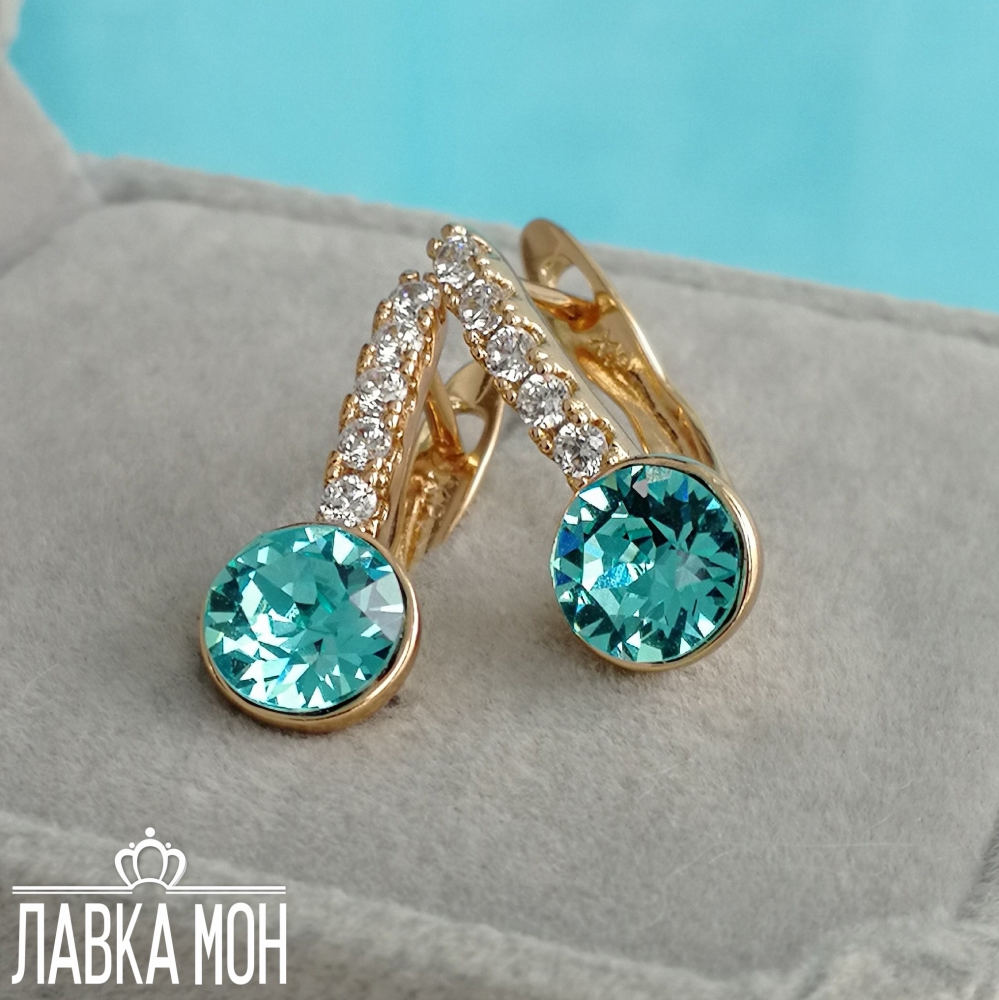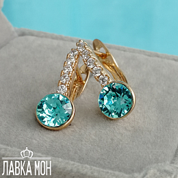 Классические серьги от XP с кристаллами 0,7см Swarovski в оттенке "Бирюзовый". Высота изделия около 1,7см, английский замок.