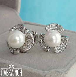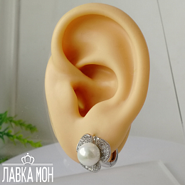 "Нежнятина" от фабрики XP. Серьги-колечки с жемчужной бусиной, высота декора около 1,8см, диаметр кольца около 1,2см.