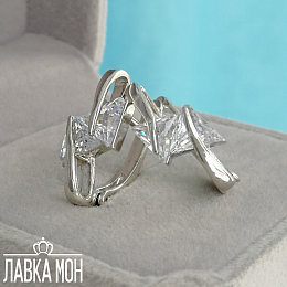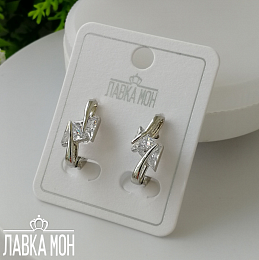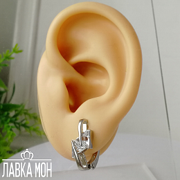 Серьги-стрелочки на английском замке, выполнены в белом оттенке золота. Высота изделия около 1,8см, штифт занижен, 0,6см.