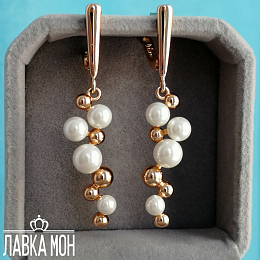 Серьги "Жемчужный Виноград" от фабрики Fj. Английский замок, общая высота около 4,5см.