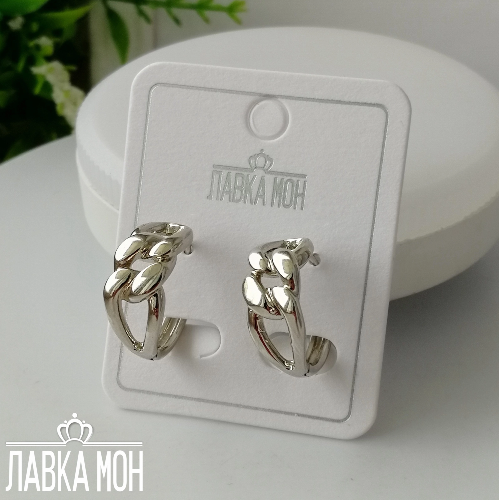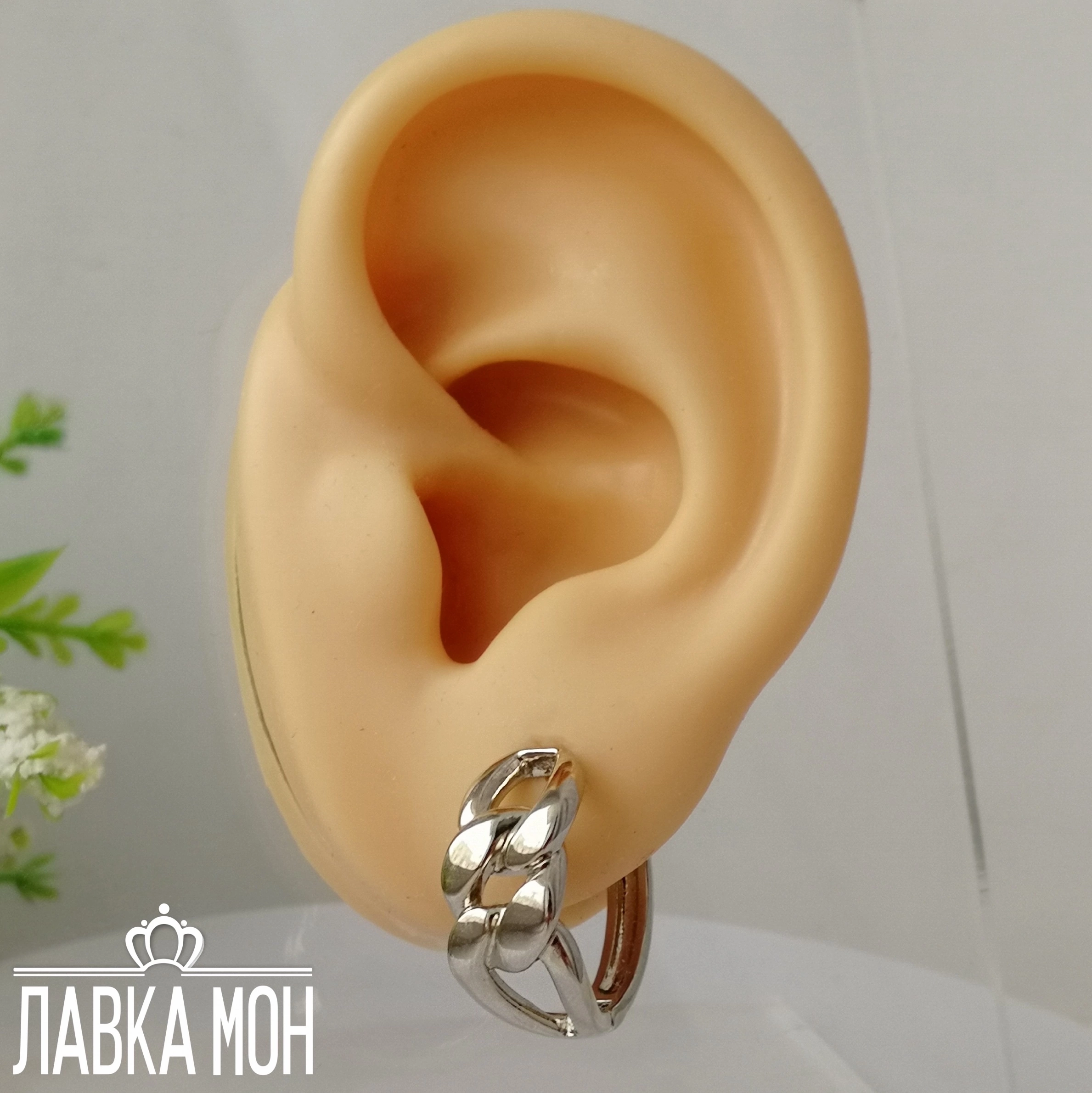 Серьги-кольца в виде панцирной цепи, абсолютная база на каждый день к любому гардеробу. Ширина около 0,8см, диаметр 1,8см.