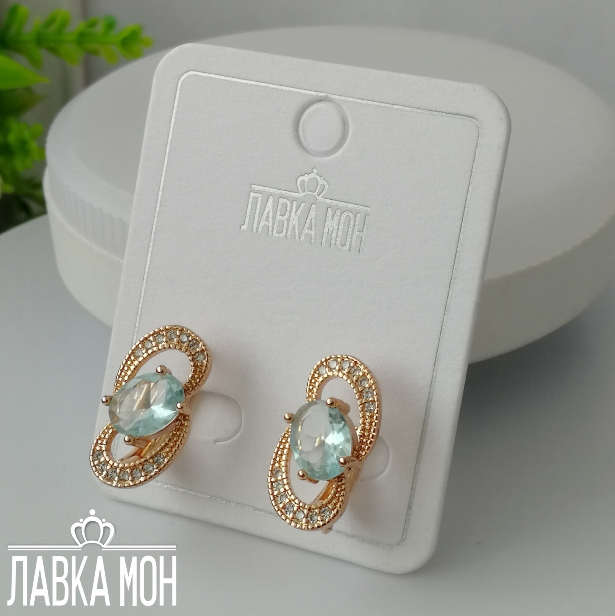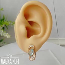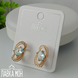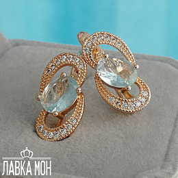 Нежность от Fj, серьги в розовом оттенке золота с вставкой под голубой Топаз. Высота около 1,8см, английский замок.