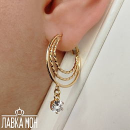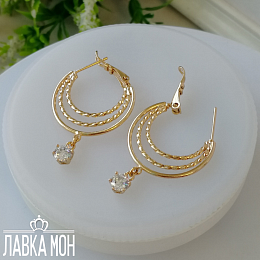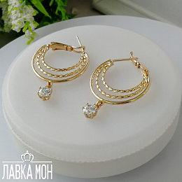 Серьги-кольца XP с подвеской-фианитом. Общая высота изделия около 3,5см.