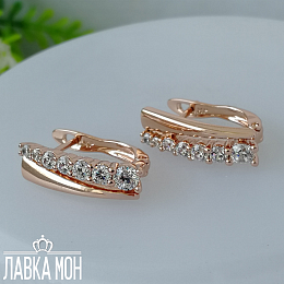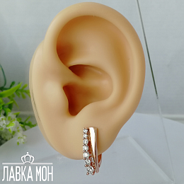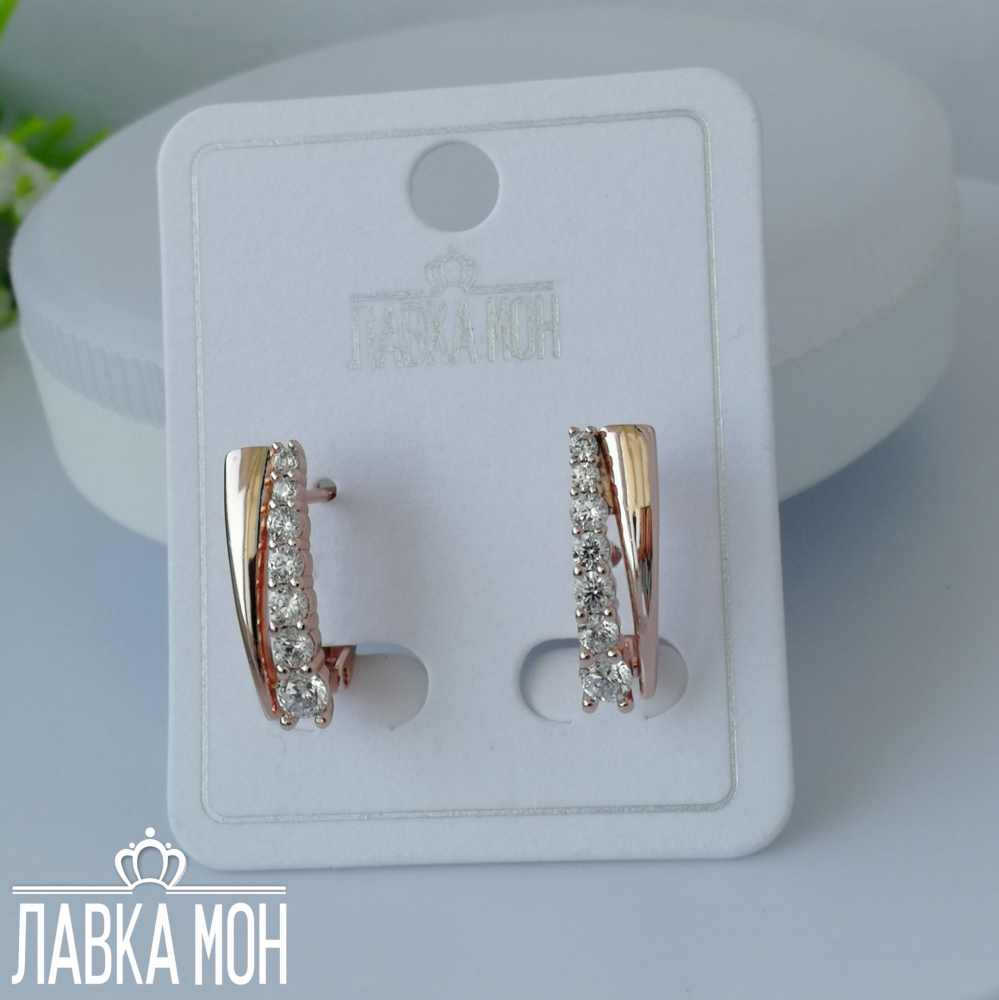 Классика под золото и бриллианты. Английский замок, штифт занижен. Фабрика XP. Высота серьги около 1,8см.