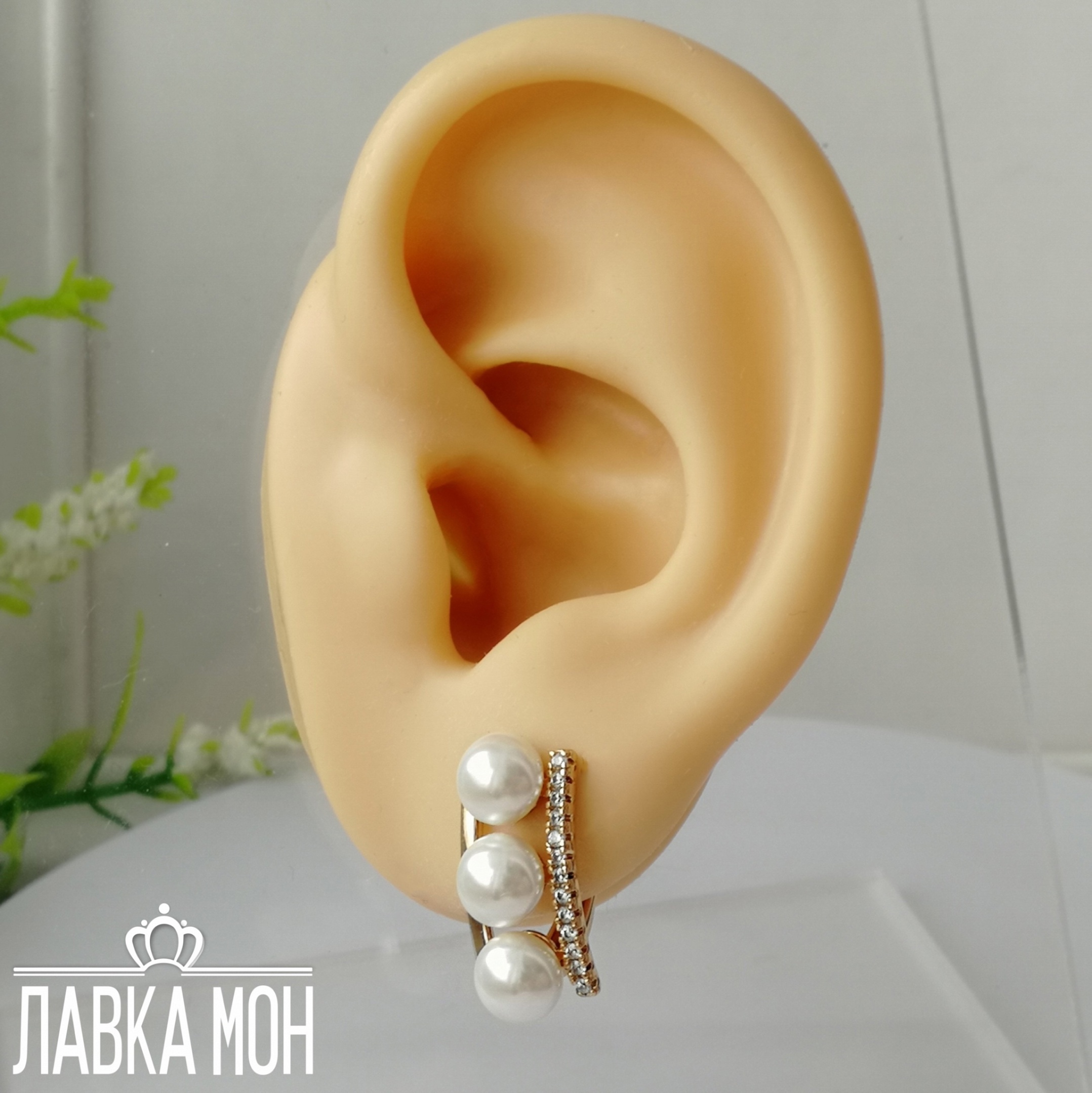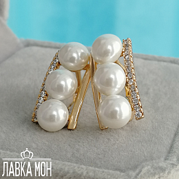Серьги "Жемчужное Трио" от XP. Английский замок, высота пластин около 1,6см.