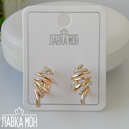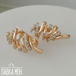 Новинка! Серьги тончайшей ювелирной работы от XP "Серпантин", выполнены в оттенке розового золота, украшены белыми фианитами. Высота изделия около 2см.