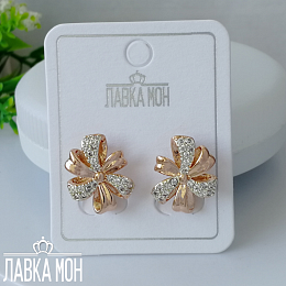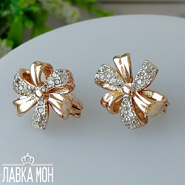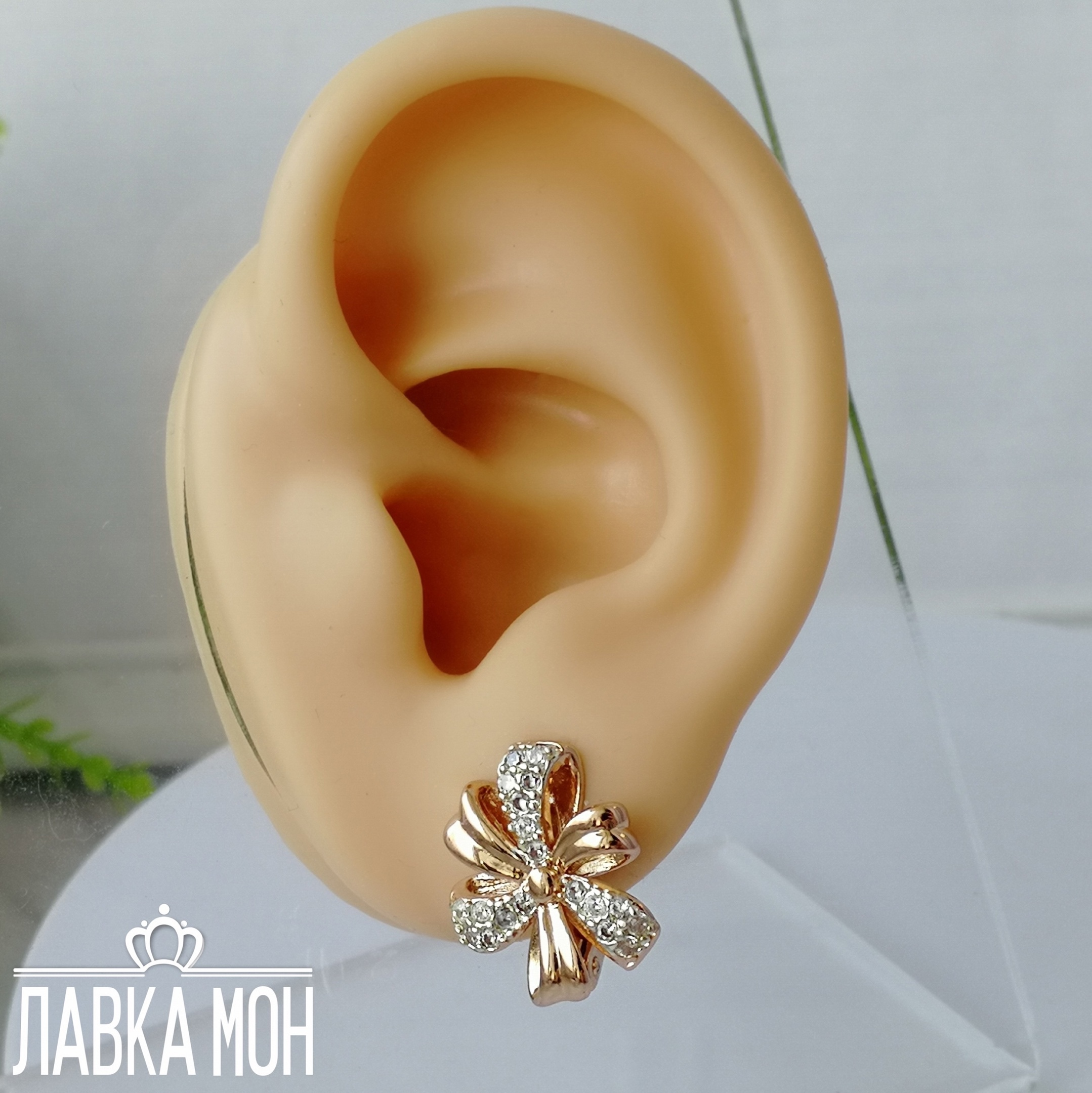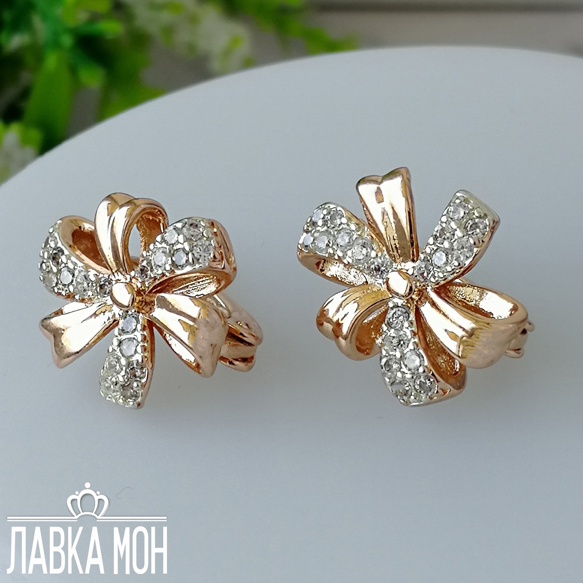 Биколорные серьги "Бантики" от Fj с фианитами и алмазной гранью. Высота изделия около 1,7см, английский замок.