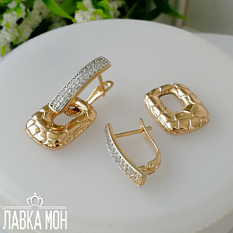 Серьги-трансформеры, состоят из биколорных пластин на английском замке (штифт занижен) и подвесного элемента с анималистическим принтом "Кожа рептилии". Высота пластин около 1,8см, общая высота сборной серьги 2,8см.