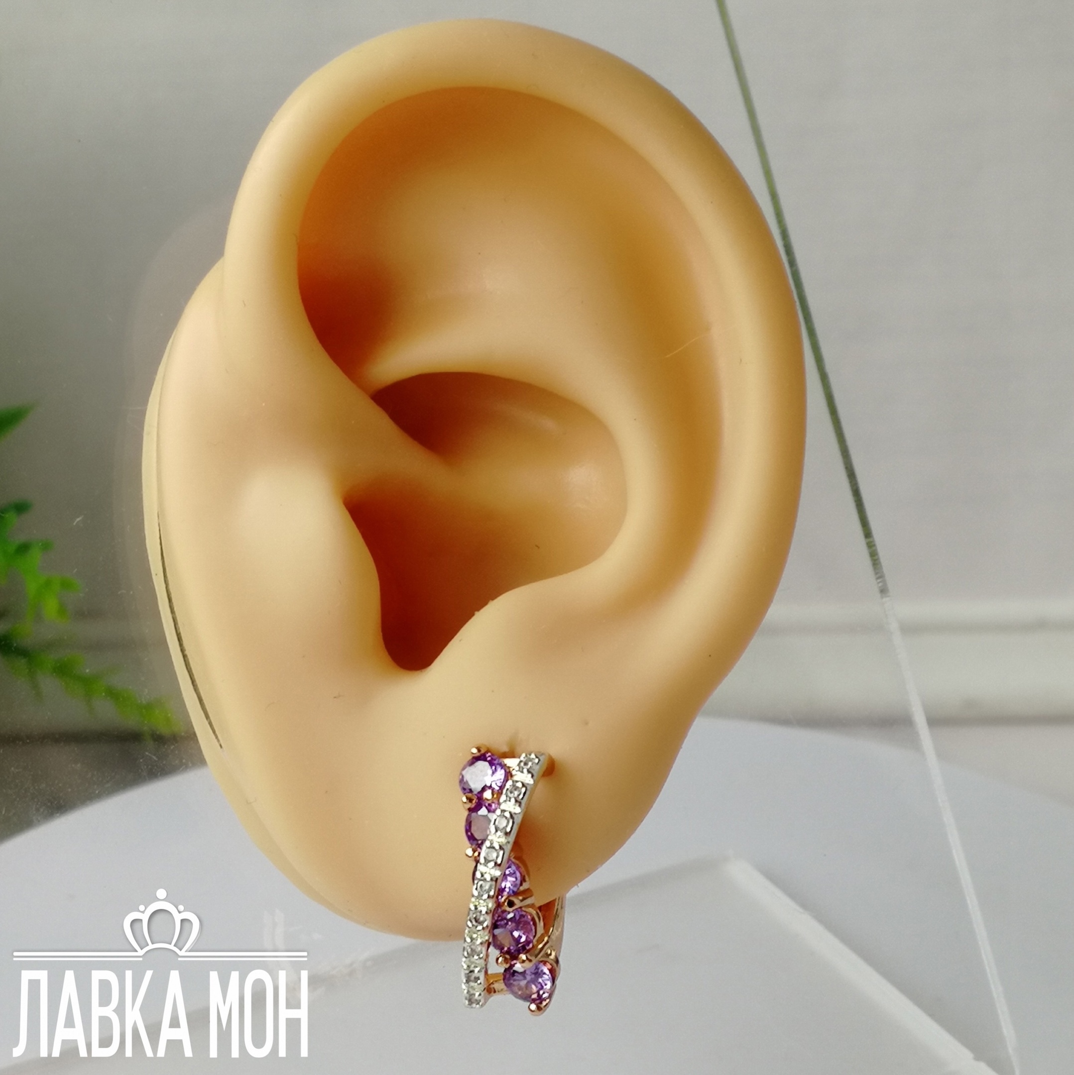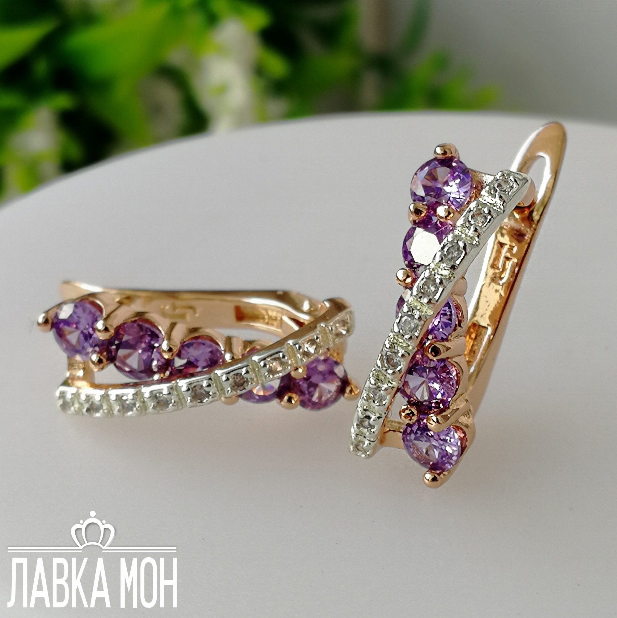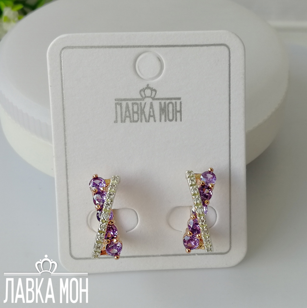 Новинка! Биколорные серьги от Fj с дорожкой белых и аметистовых фианитов. В пару подойдет кольцо П-621. Высота изделия около 1,6см.