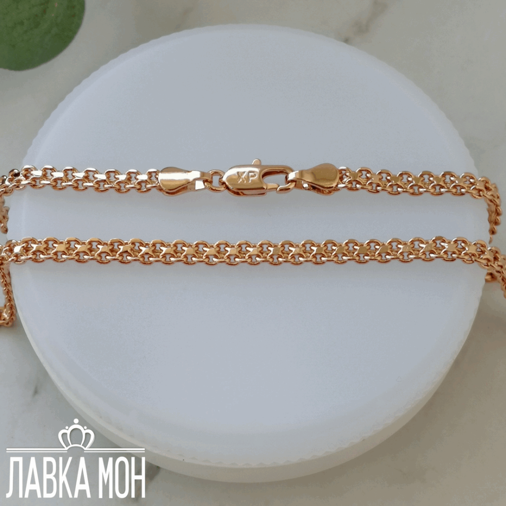 Классическая цепь для мужчин и женщин, плоское двойное якорное плетение в цвете розового золота. Фабрика XP, ширина около 0,4см.