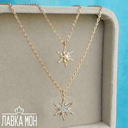 Очень нежно. Двурядное, тонкое колье от XP с подвесками-звездочками. Длина верхней цепи варьируется от 38 до 45см ( есть удлиняющая цепь).