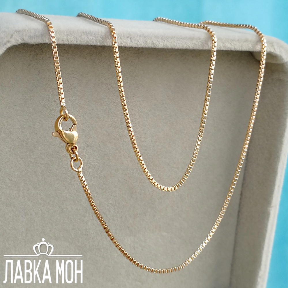 Кулонная цепь "Квадратная", тонкая и легкая, отличная модель под небольшие кулоны, ширина около 0,1см. Фабрика XP, выполнена в цвете желтого золота.