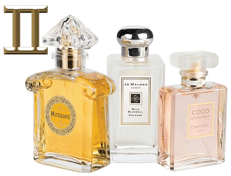 Близнецы не боятся экспериментировать, пробуя самые различные парфюмы. Им вполне подойдут духи с верхними яркими цитрусовыми нотам и тонкими, сладкими нотками лилии, розы и жасмина в "сердце" парфюма. Это подчеркнет их жизнелюбие и оптимизм. Ароматы свежей зелени и специй способны благотворно влиять на нервную систему Близнецов, успокаивая, но, не ослабляя их внимание.